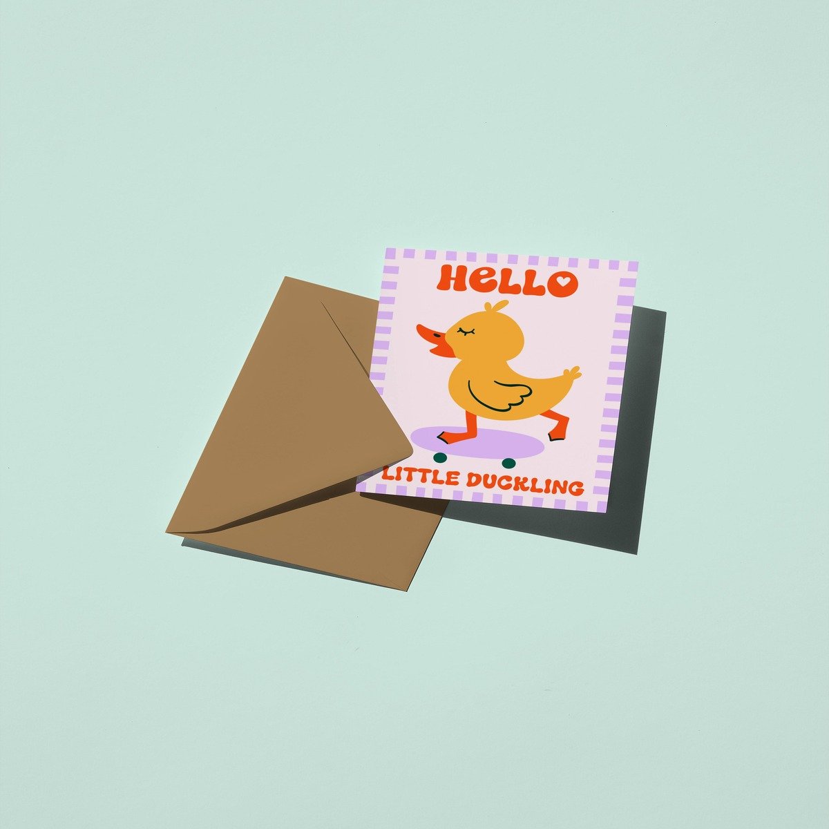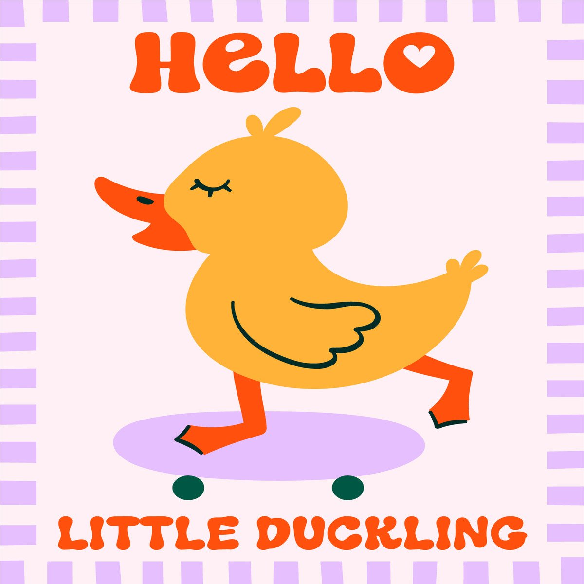 A cheerful duck on a skateboard brings a bright hello with playful charm.
