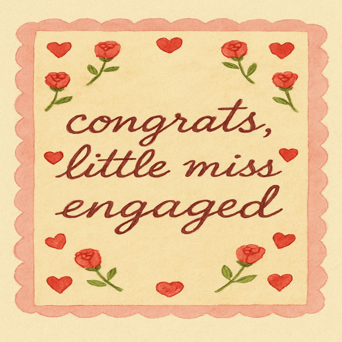 The perfect sweet card to celebrate her new chapter, with hand-painted roses, hearts, and playful scalloped edges.